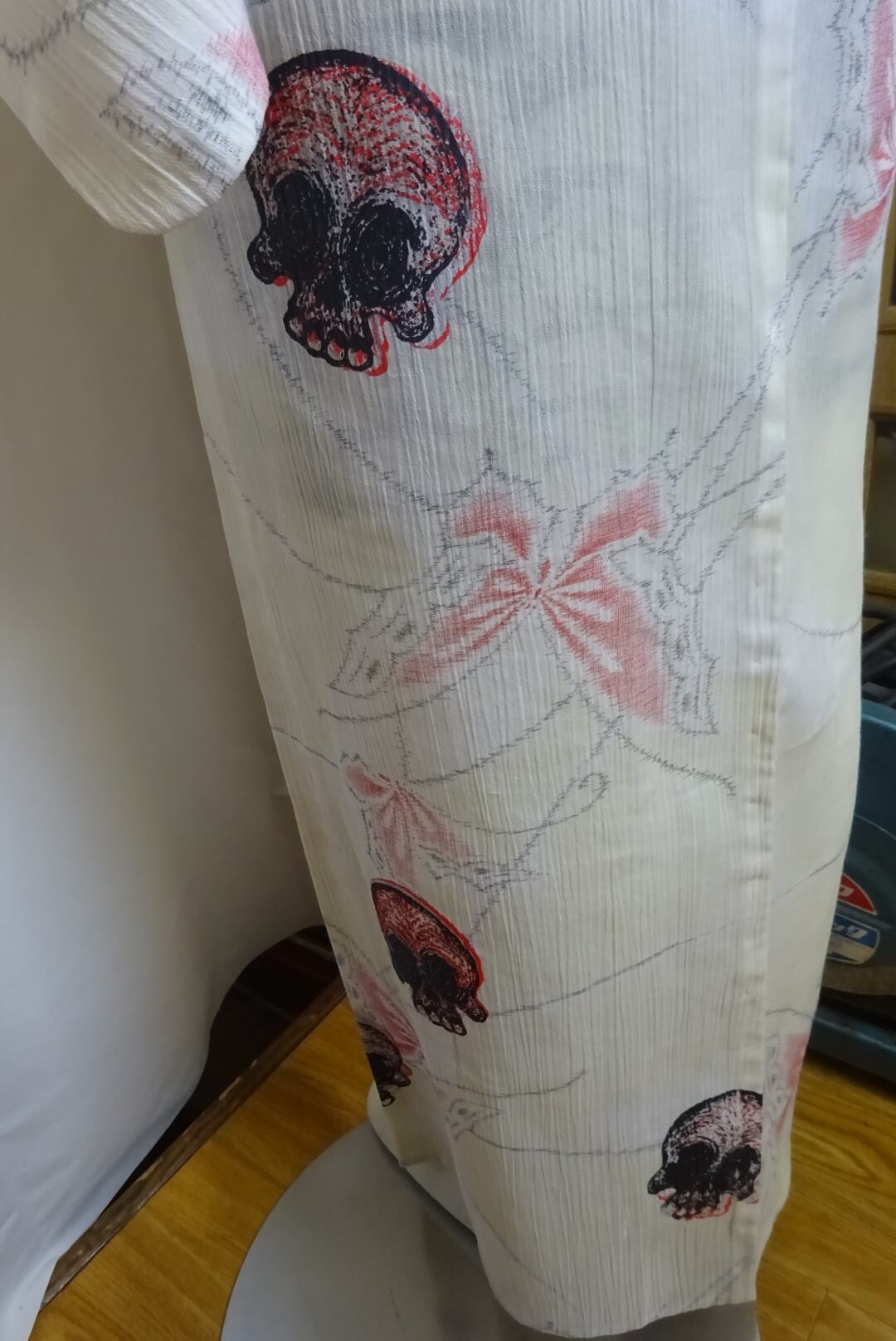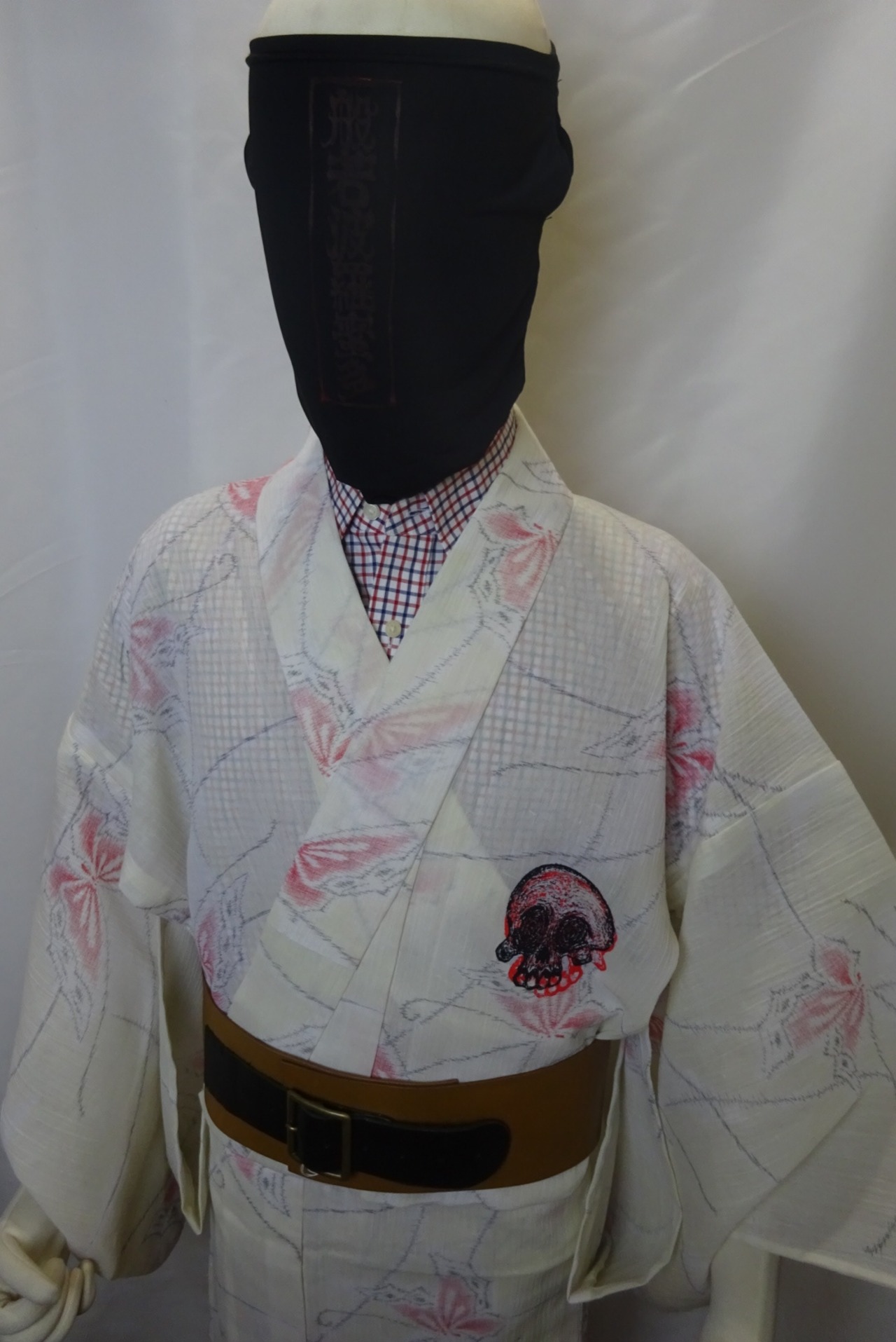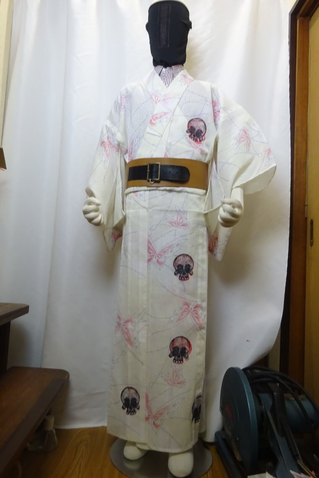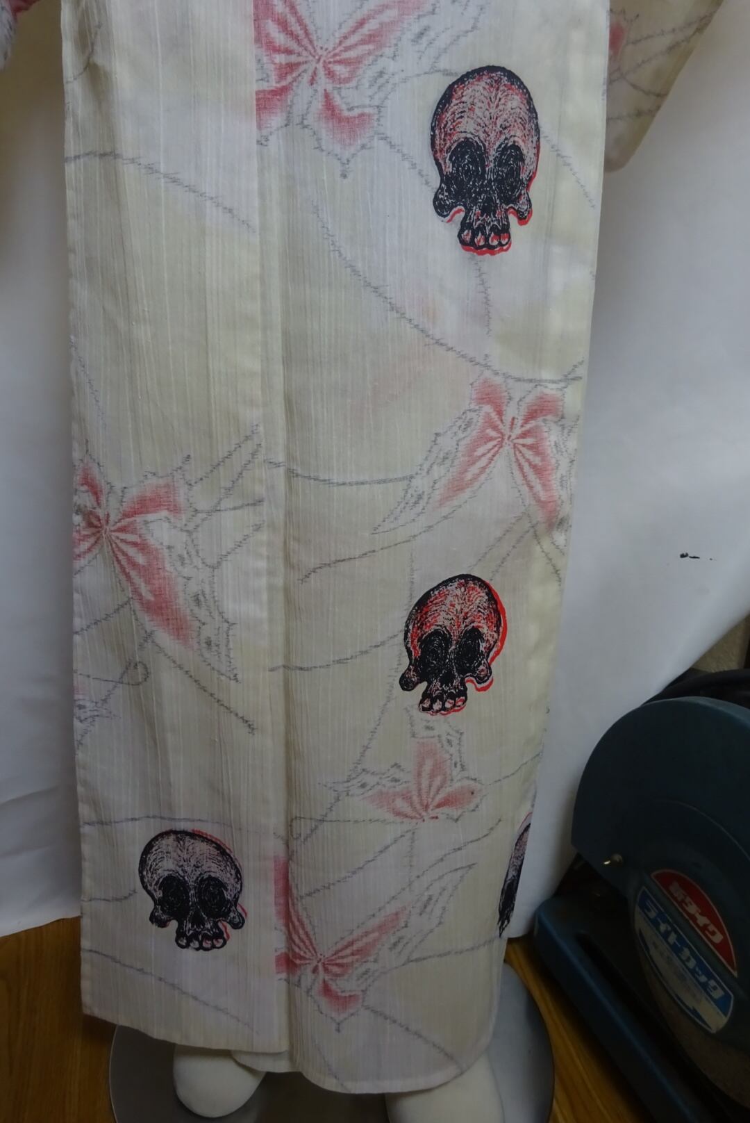 ポリエステルの夏着物にオリジナルの髑髏のシルクスクリーンを刷りました。